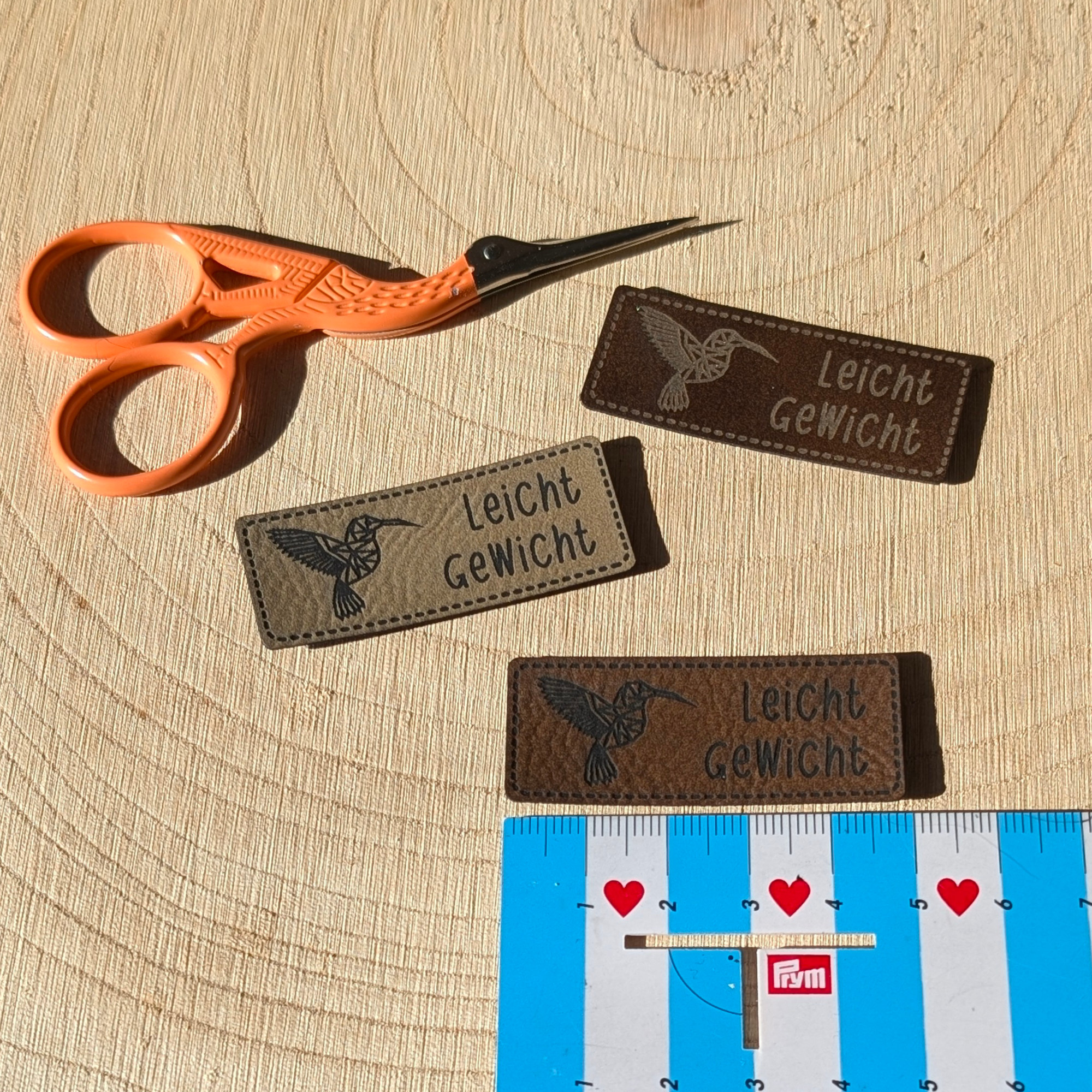 Verleihe deinen Nähprojekten eine ganz persönliche Note! Mein zartes Kolibri-Motiv aus der Fractal Friends Kollektion gibt es ab sofort als fertiges Label-Design. Die Kombination aus dem filigranen Low-Poly-Vogel und dem Schriftzug „Leichtgewicht“ ist das perfekte Finish für luftige Accessoires und Kleidung.