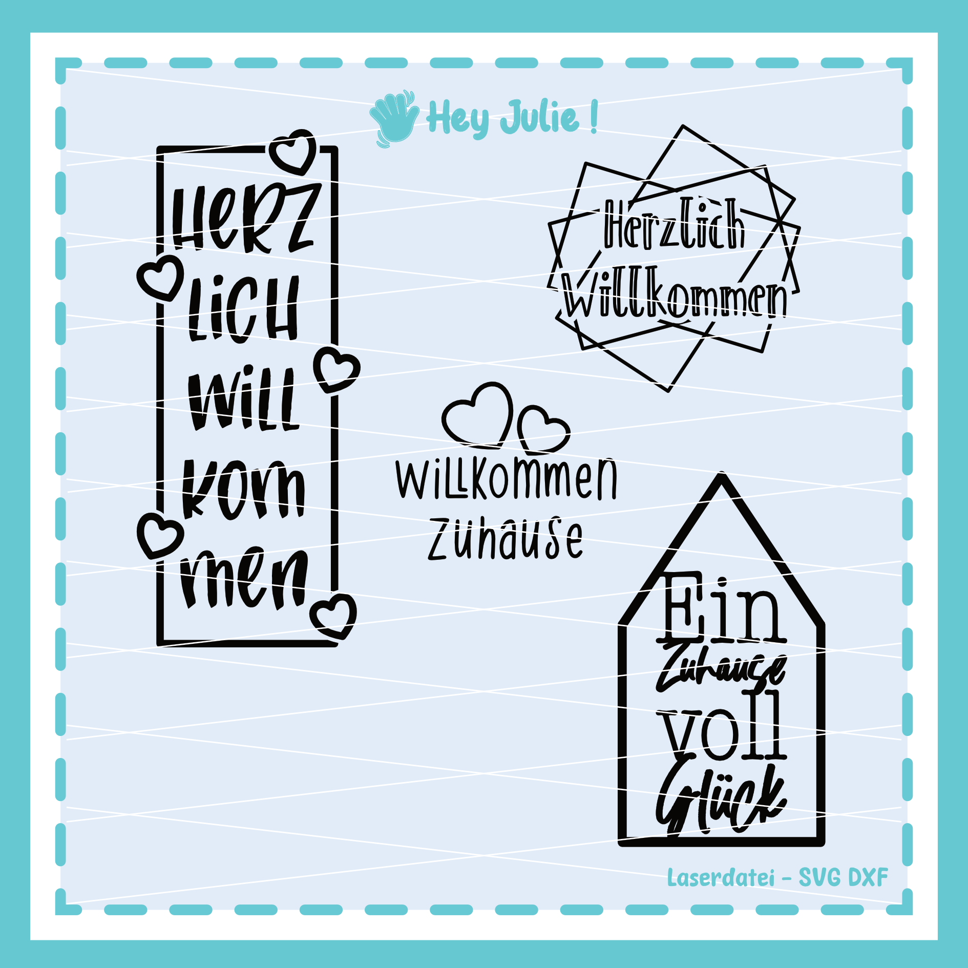 Plotdatei mit 4 Herzlich Willkommen Schriftzügen.